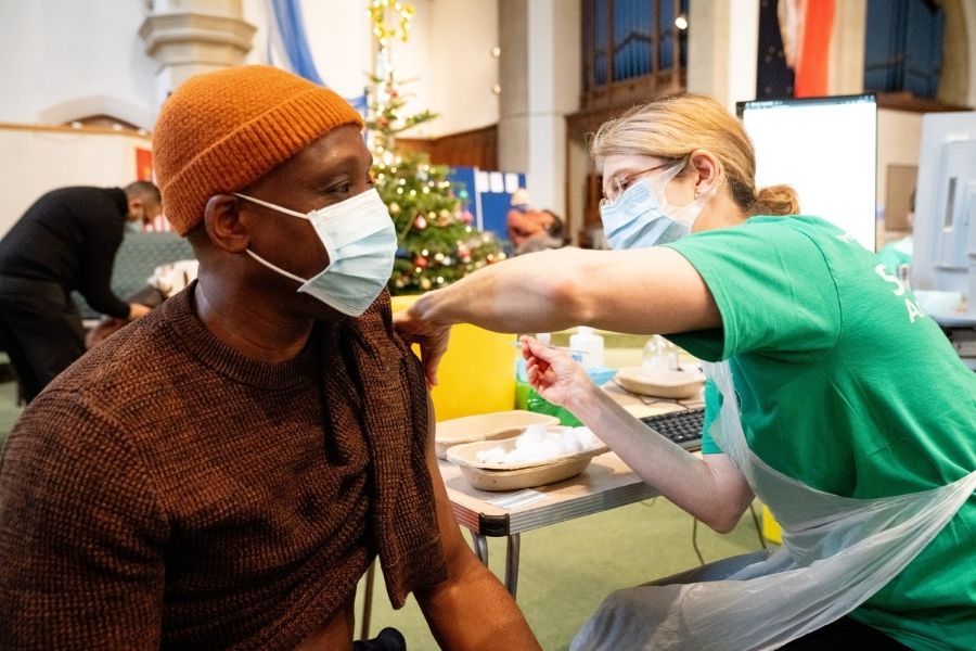 St John have spent more than 920,000 hours delivering lifesaving inoculations, dealing with patients at more than 650 locations across the country. Literally millions of people feel more secure having had their first, second or booster jabs from some of our 30,000 volunteers. We've been everywhere – at vaccination centres, GP surgeries, pharmacies, mobile treatment centres, care homes and even vulnerable people’s homes. When Omicron hit last month, we stepped up again – at one point, increasing vaccination activity by an incredible 200% in a single week.